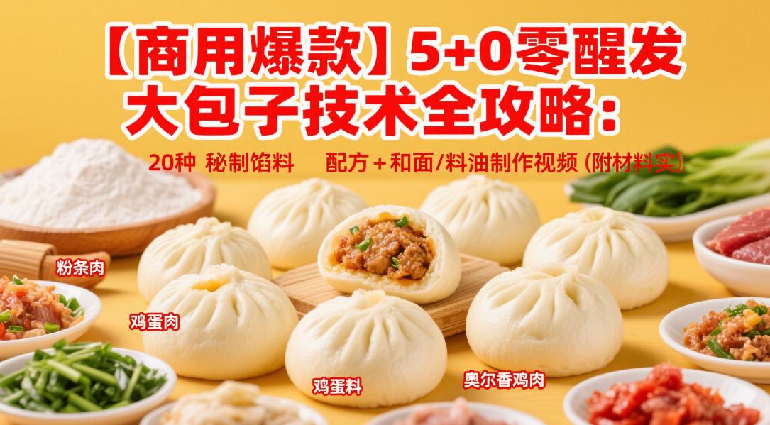 想要快速掌握大包子制作核心技术,轻松做出皮薄馅大、松软可口的包子?这份 “5+0 零醒发大包子技术” 资料就是你的宝藏!无需漫长等待,采用独家零醒发技术,大幅缩短制作时间,实现快速出餐,无论是餐饮开店创业,还是家庭美食制作,都能轻松驾驭。